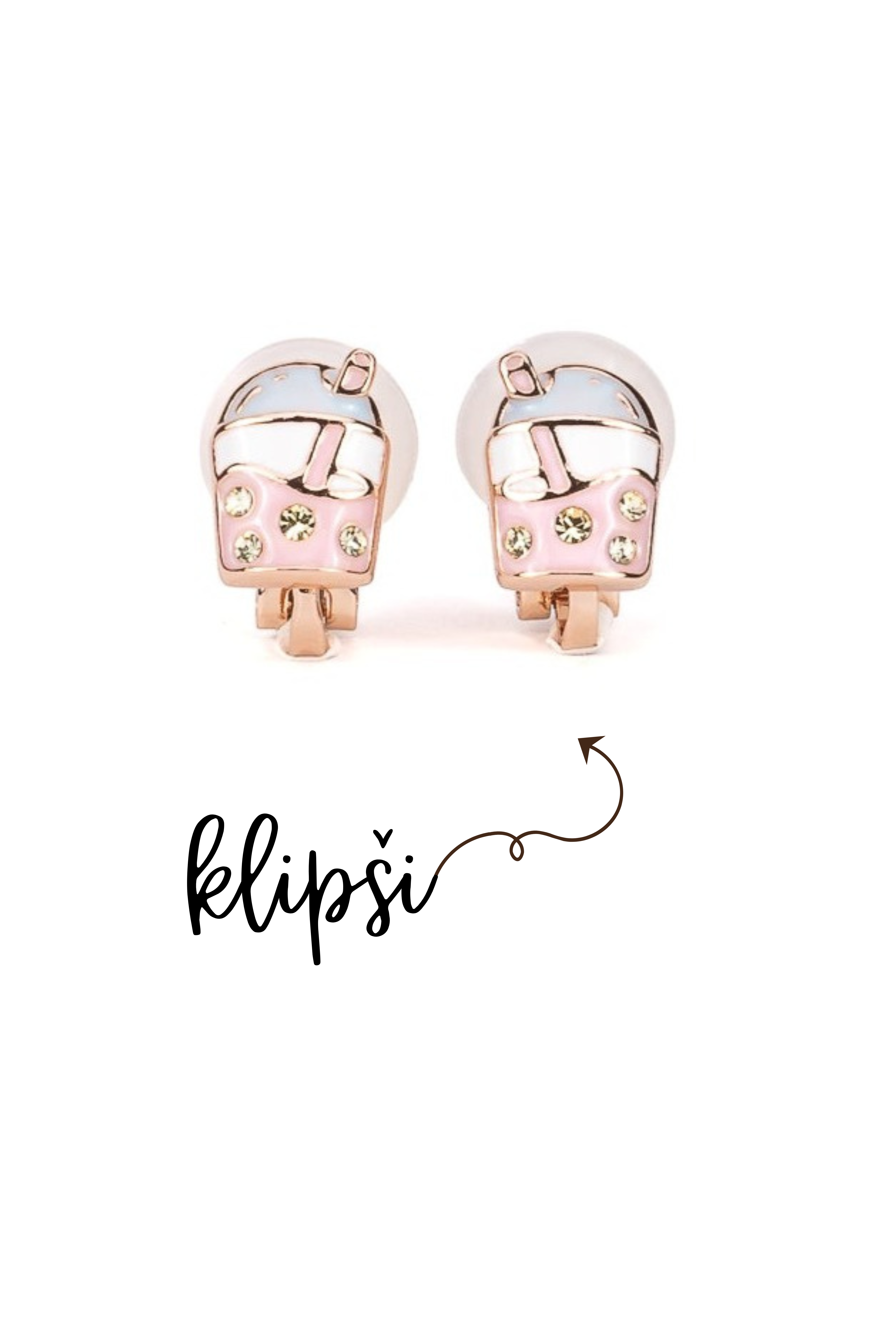 Burbuļtējas dizaina klipši bērniem kam vēl nav caurumiņi ausīs, greznoti ar kristāliņiem.