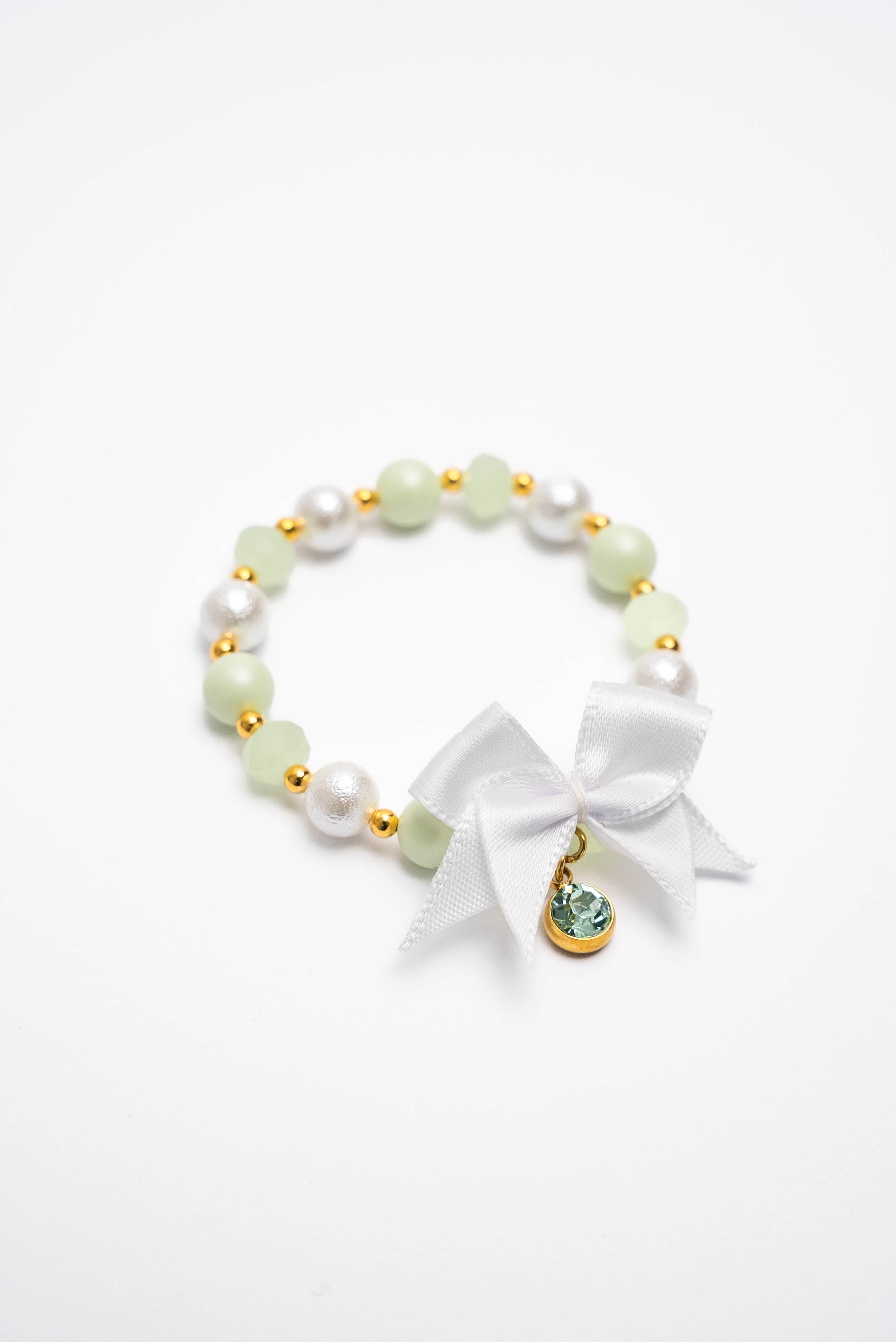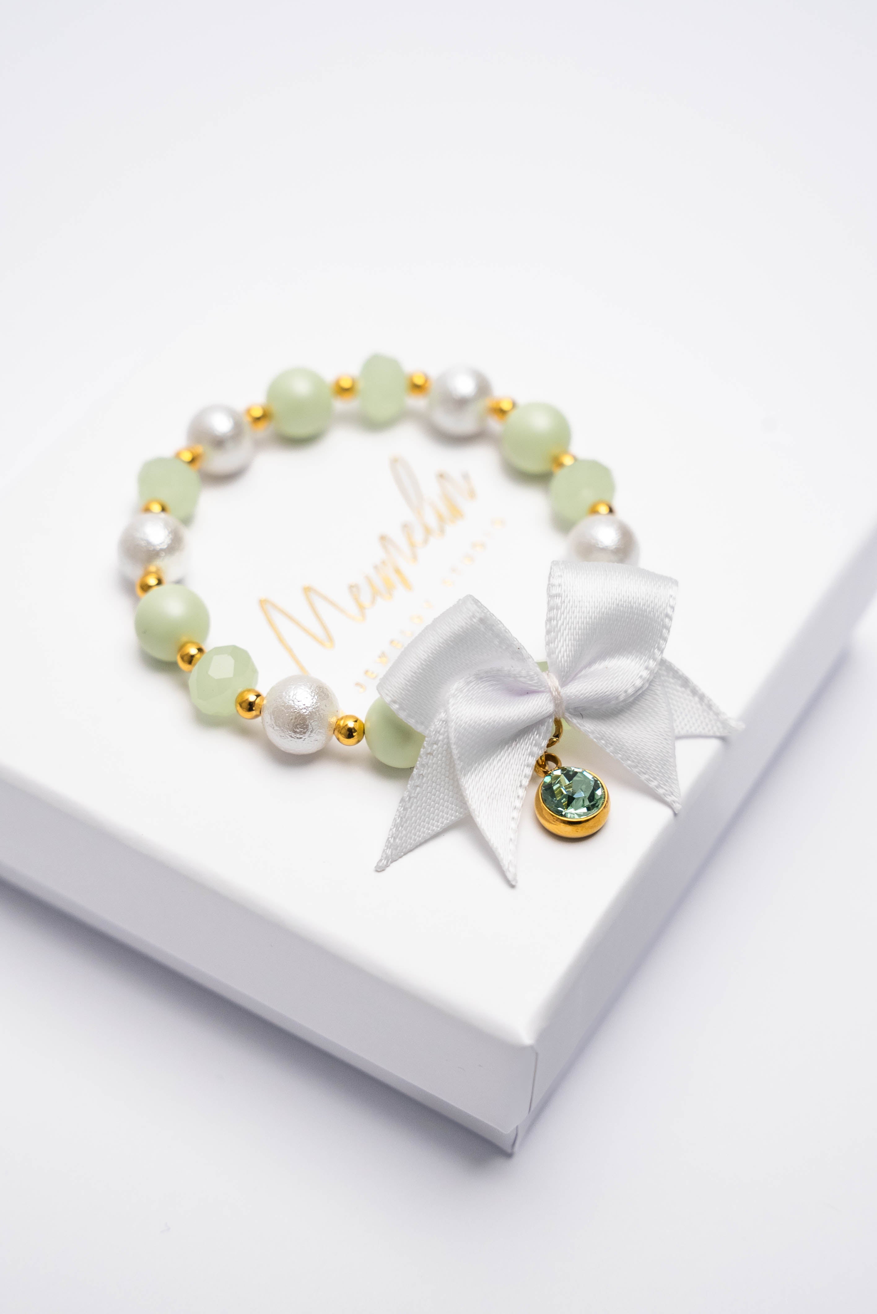 Perlamutra pērļu aproce ar Swarovski kuloniņu. Izgatavota uz elastīgas gumijas, kas ērti pielāgojas rokas apkārtmēram.
