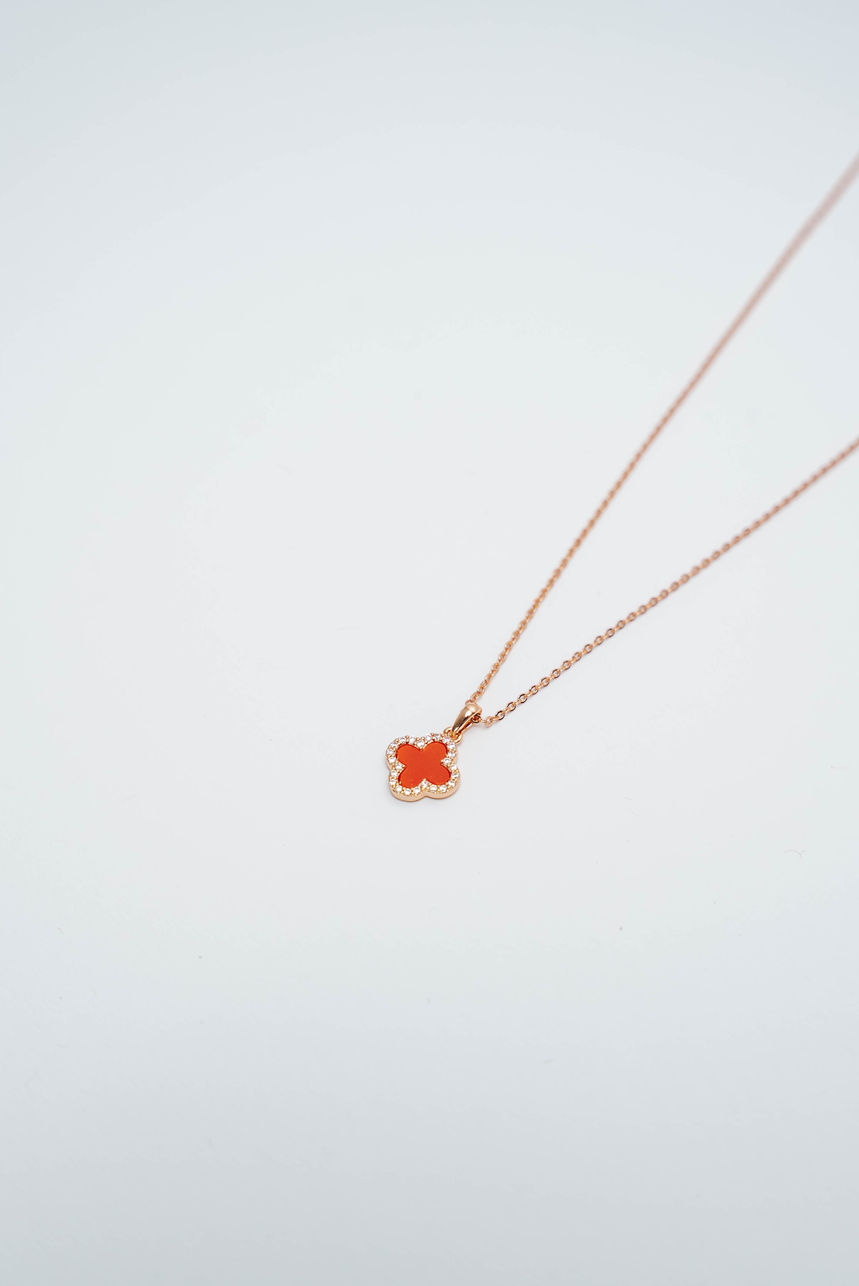 CLOVER Rose Gold kaklarota ar sarkanu Clover kuloniņu, kas rotāta ar cirkonijiem.