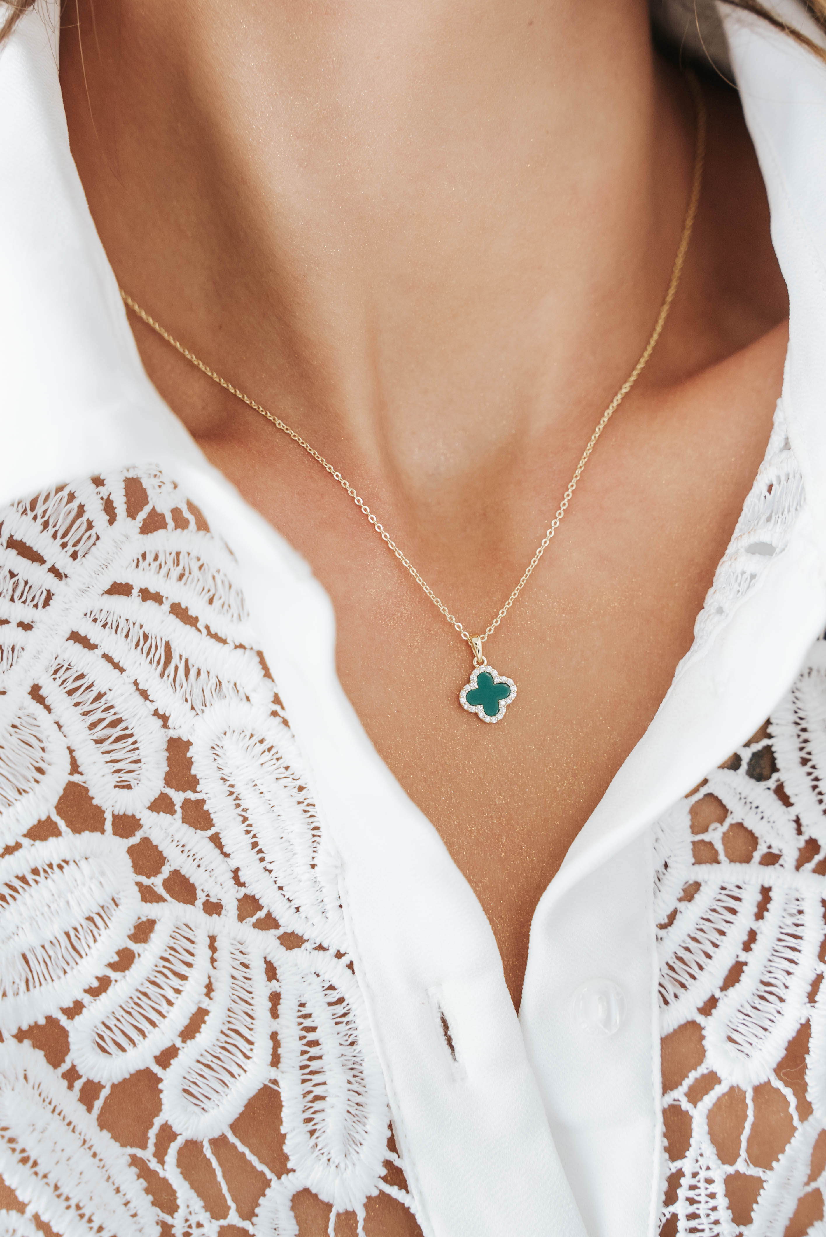 CLOVER Gold kaklarota zaļu Clover kuloniņu, kas rotāta ar cirkonijiem.