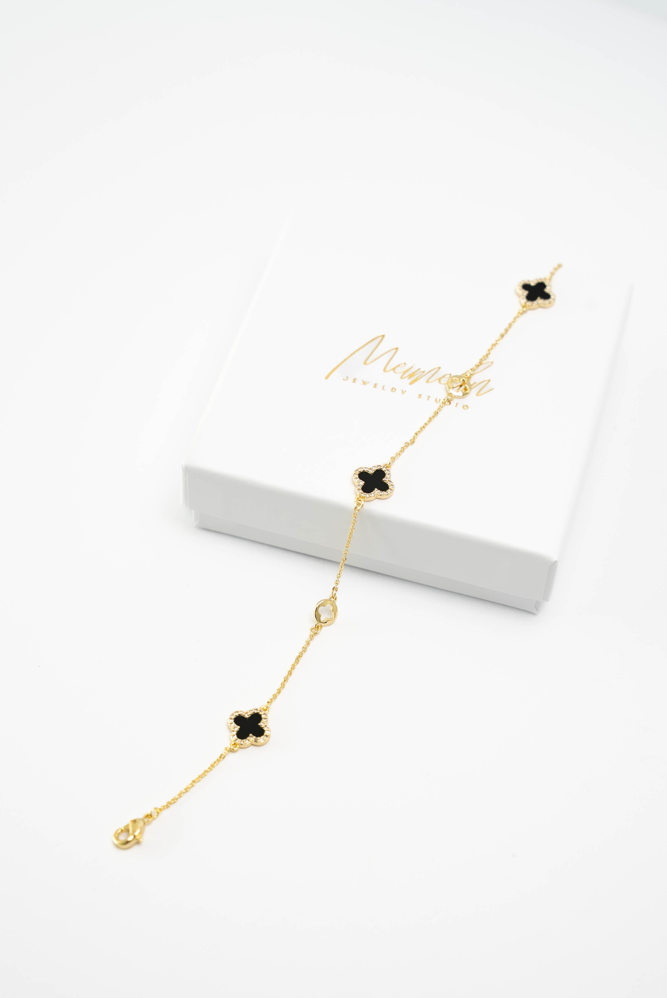 Smalka Clover aproce ar melniem Clover dizaina elementiem.