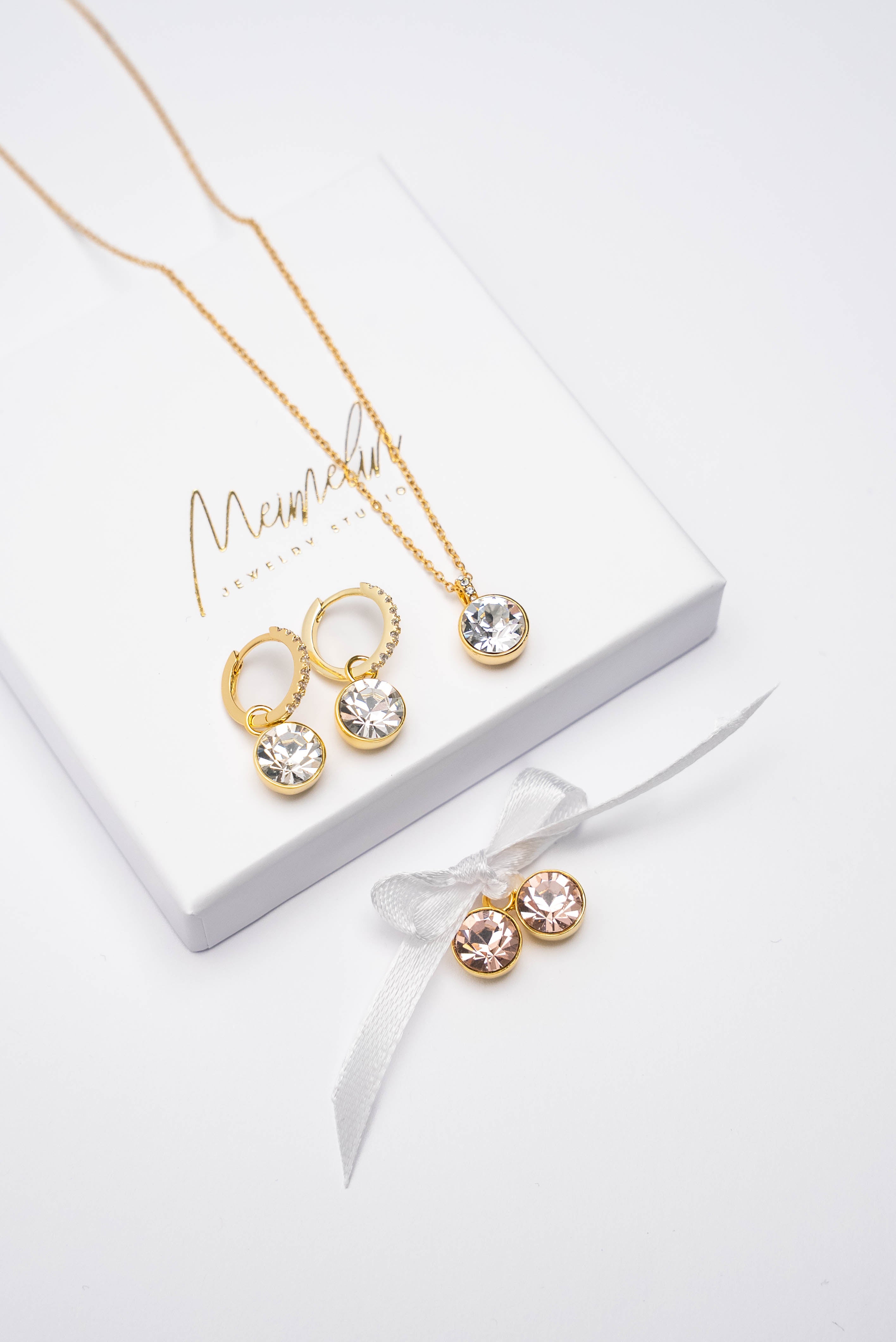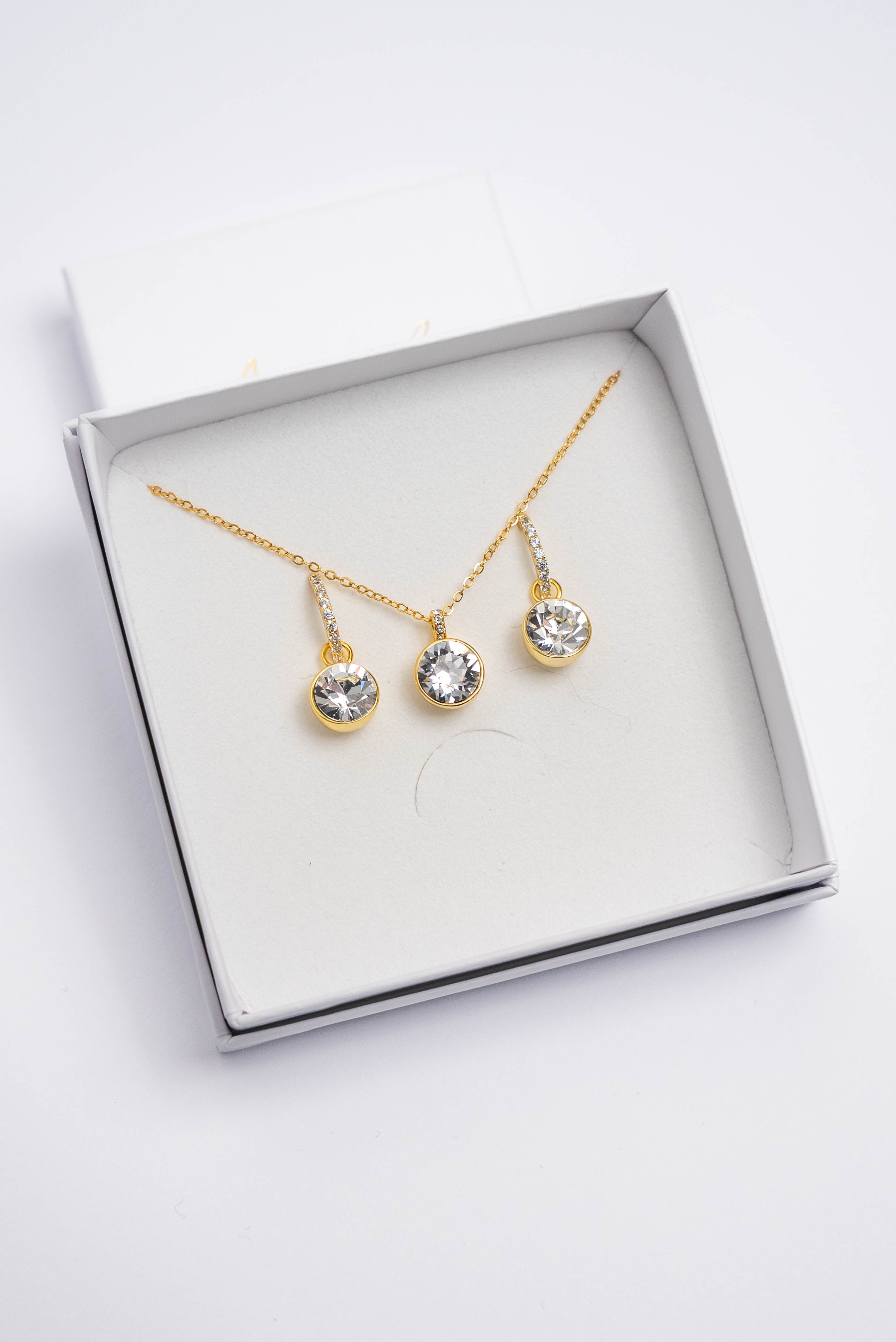 ESME dizains tagad arī komplektā! Komplektā Crystal toņa kaklarota ar kuloniņu un Esmes transformējošie auskariņi! DĀVANĀ saņem Vintage rose toņa maināmus kuloniņus auskariem!