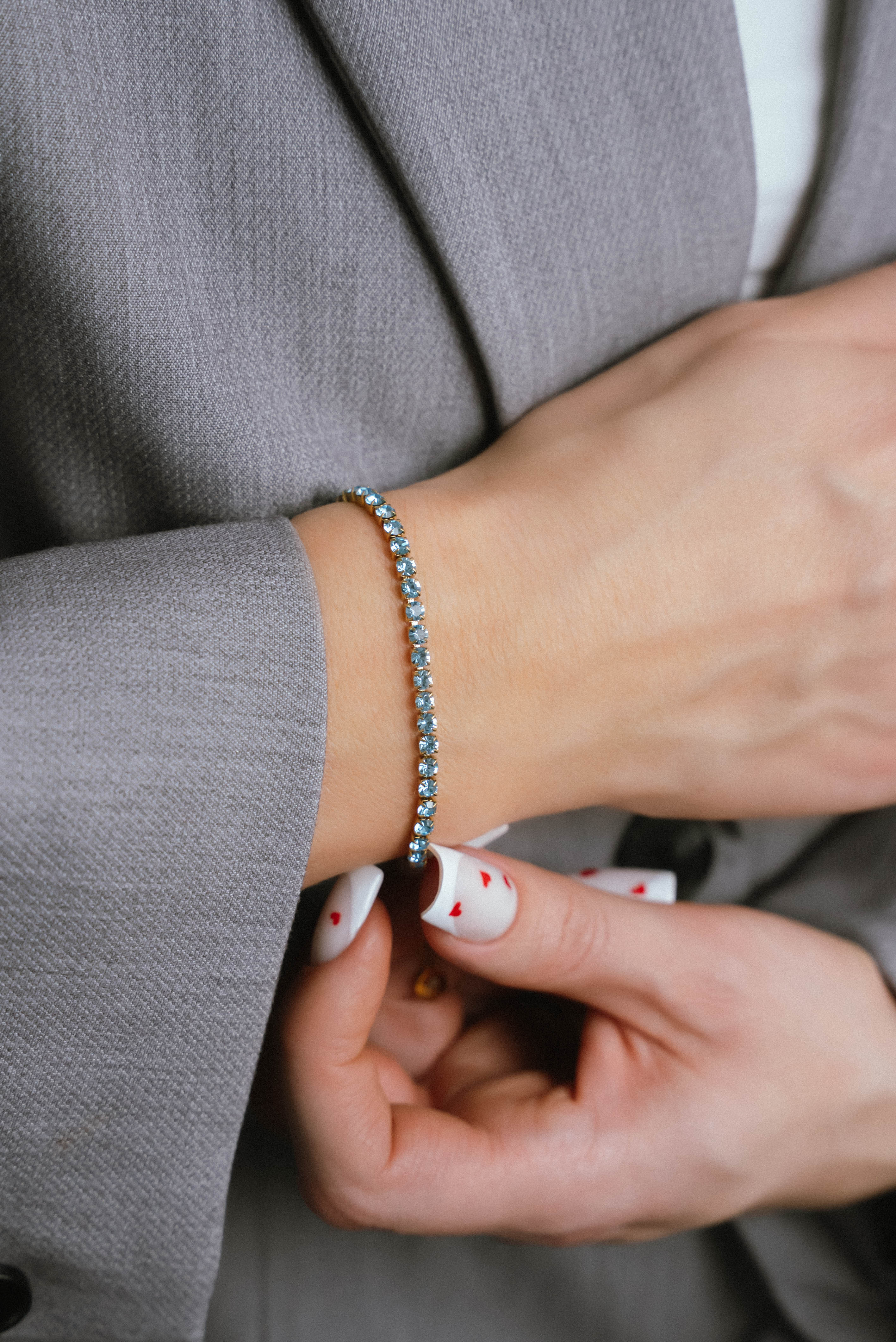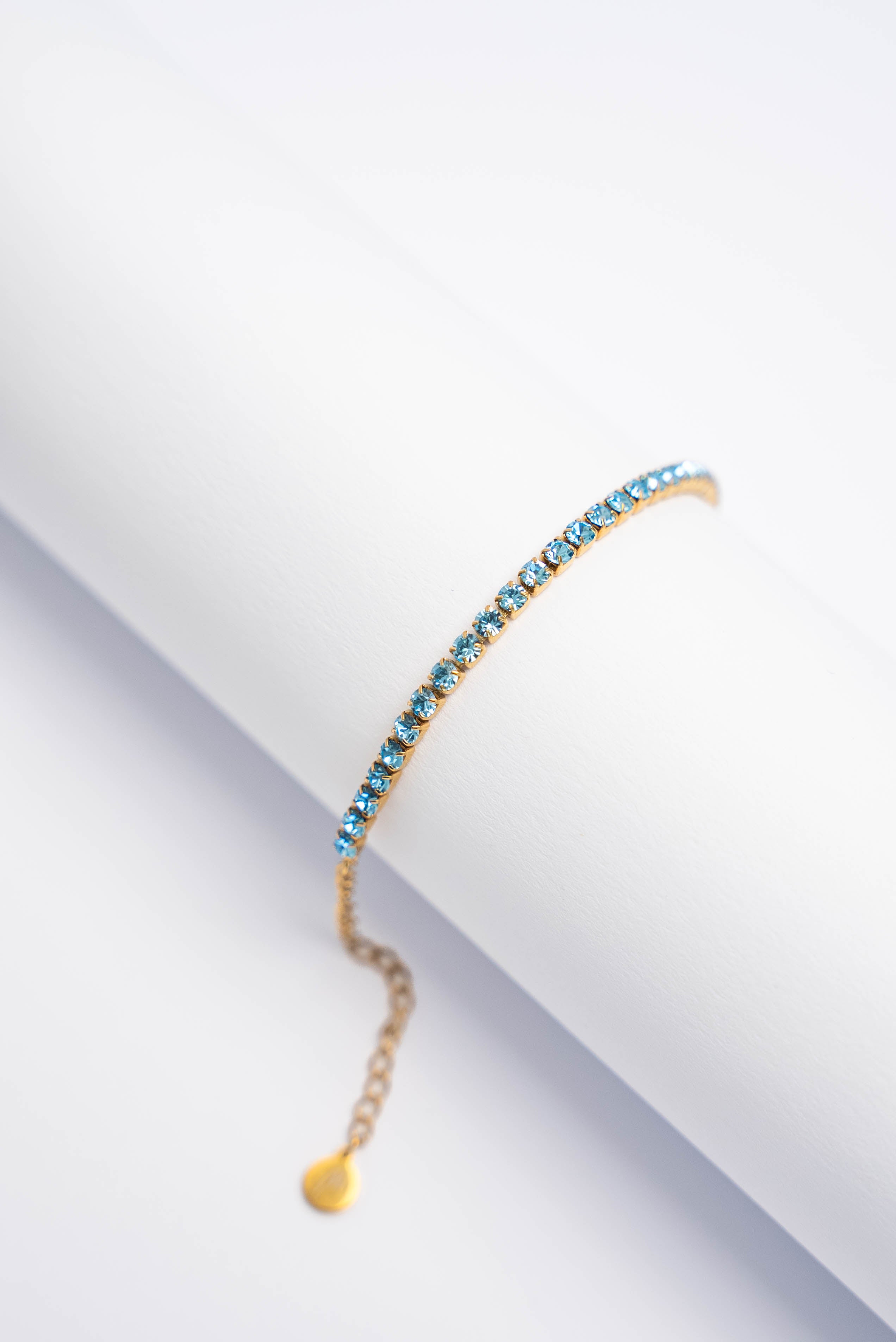 Smalka tenisa stila aproce ar mirdzošiem Swarovski Aquamarine toņa kristāliem.